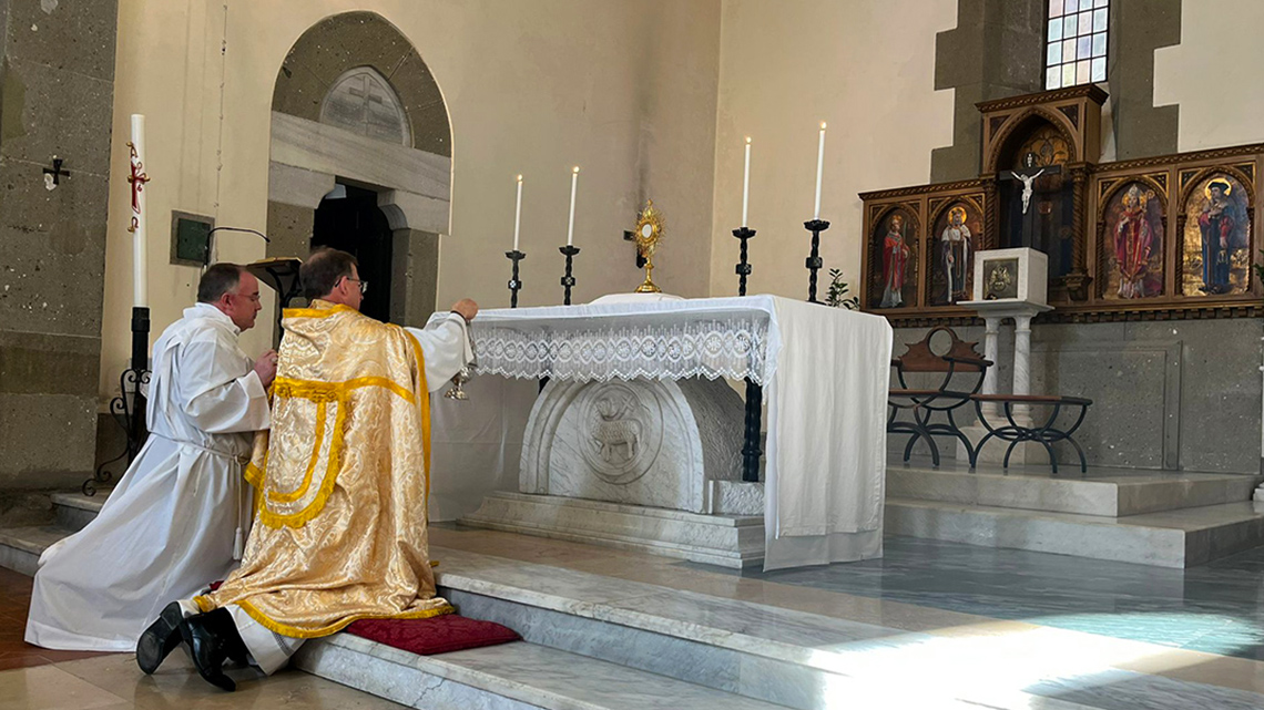The bishops gathered at 5:30pm local time in the chapel at Palazzola, the Church of Santa Maria ad Nives – Our Lady of the Snows. Archbishop John Sherrington, Lead Bishop for Life Issues for the Bishops’ Conference and Archbishop of Liverpool presided at this powerful and poignant moment of prayer.