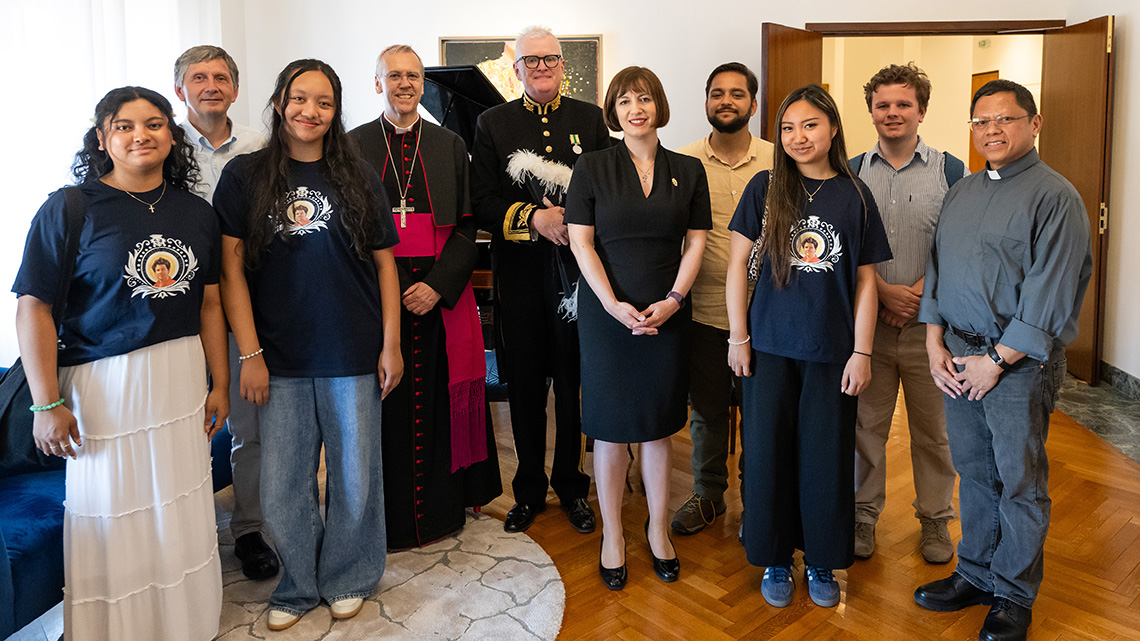 The group, led by Bishop Nicholas Hudson, was then invited by His Excellency Ambassador Christopher Trott, British Ambassador to the Holy See, to meet the Right Honourable Bridget Phillipson, Secretary of State for Education, who led a UK Government delegation to the Canonisation.